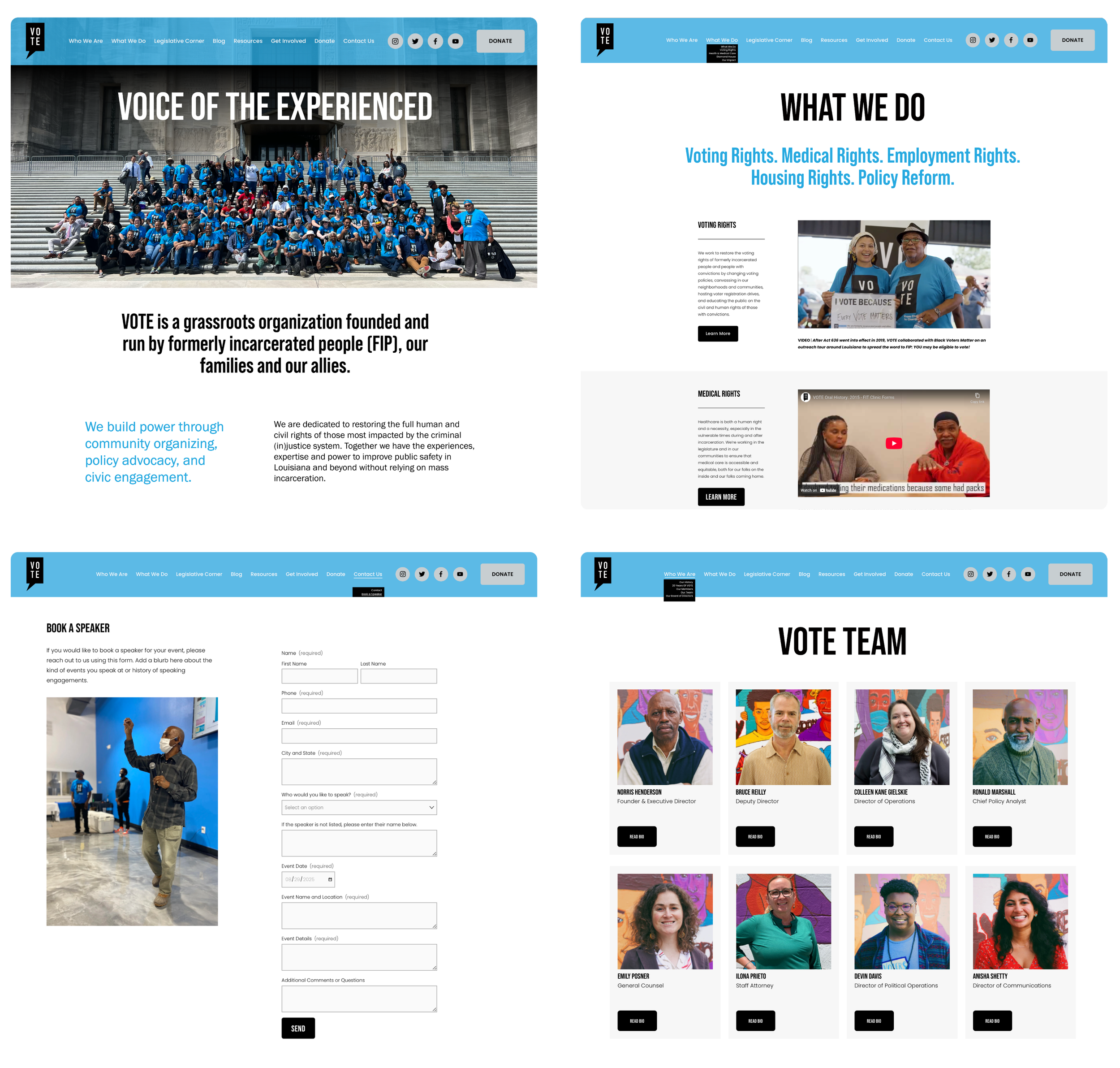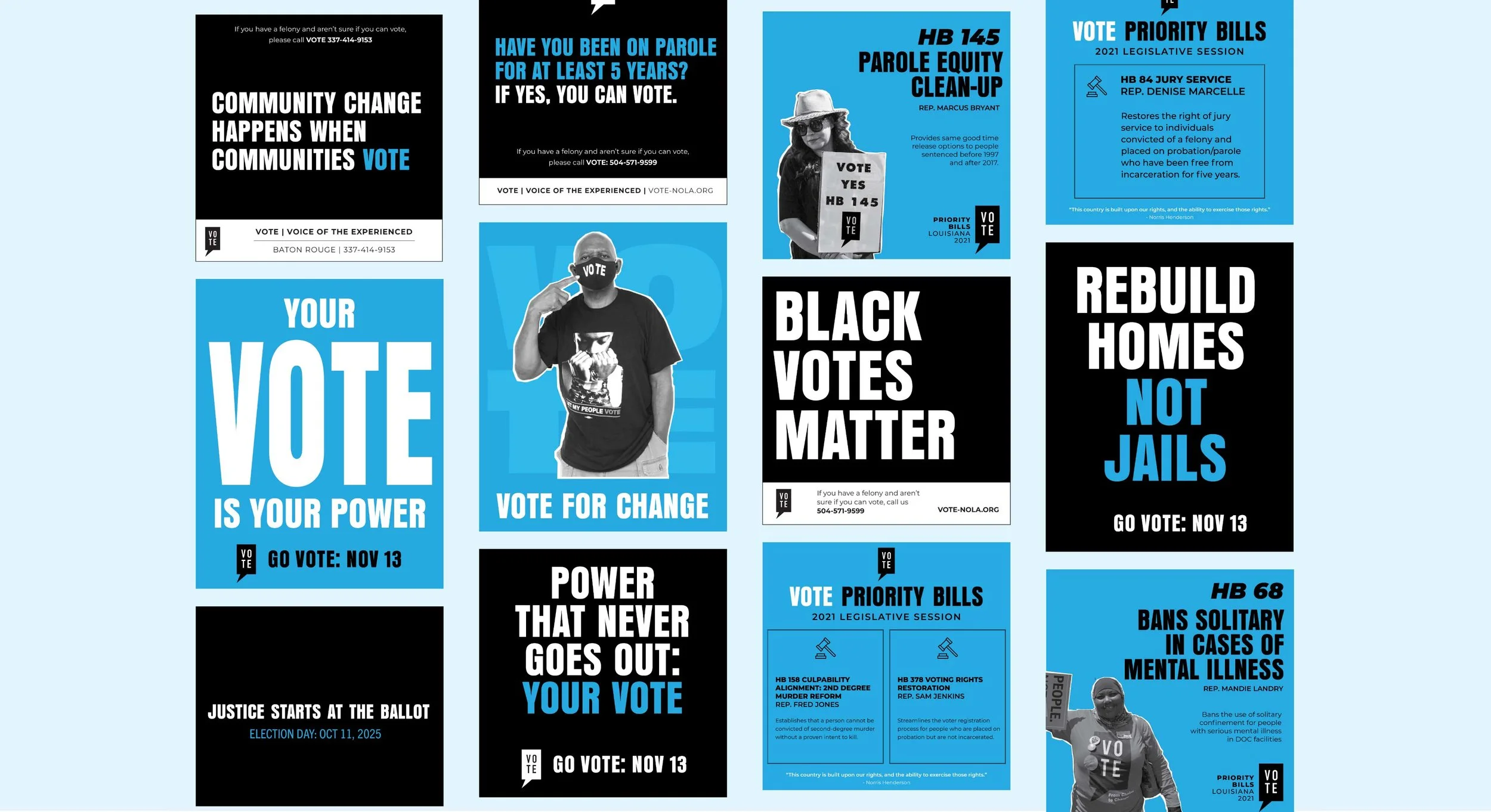 VOTE is a grassroots organization based in Louisiana, led by formerly incarcerated people, their families, and allies. VOTE focuses on restoring civil and human rights for those affected by the criminal justice system through community organizing, policy advocacy, and civic engagement.